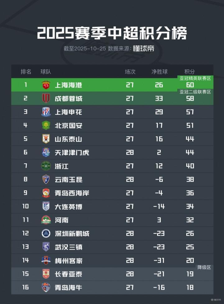 长春亚泰错失良机,本轮仅获得1分,目前仍处于降级区,落后梅州客家1分,接下来两轮将分别迎战北京国安和青岛西海岸。